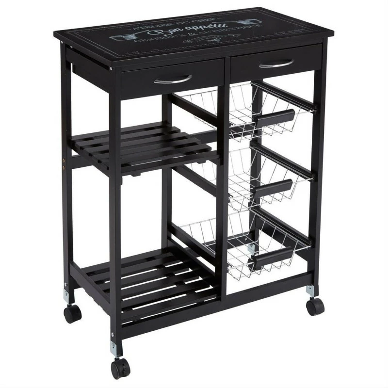 Élégante et extrêmement pratique, cette desserte de cuisine blanche avec plateau en verre dispose de nombreux avantages pour vous faire succomber. Avec ses 2 niveaux sous-jacents, ses 2 tiroirs et ses 3 paniers sur rails en métal, vous disposerez de tout le nécessaire à portée de mains afin de cuisiner sereinement. Grâce à ses 4 roulettes, vous pourrez l’emporter partout dans votre habitation. Elle vous est proposée en accessoires en coloris noir afin d’associer à tout style de déco ! A monter soi-même, notice incluse.