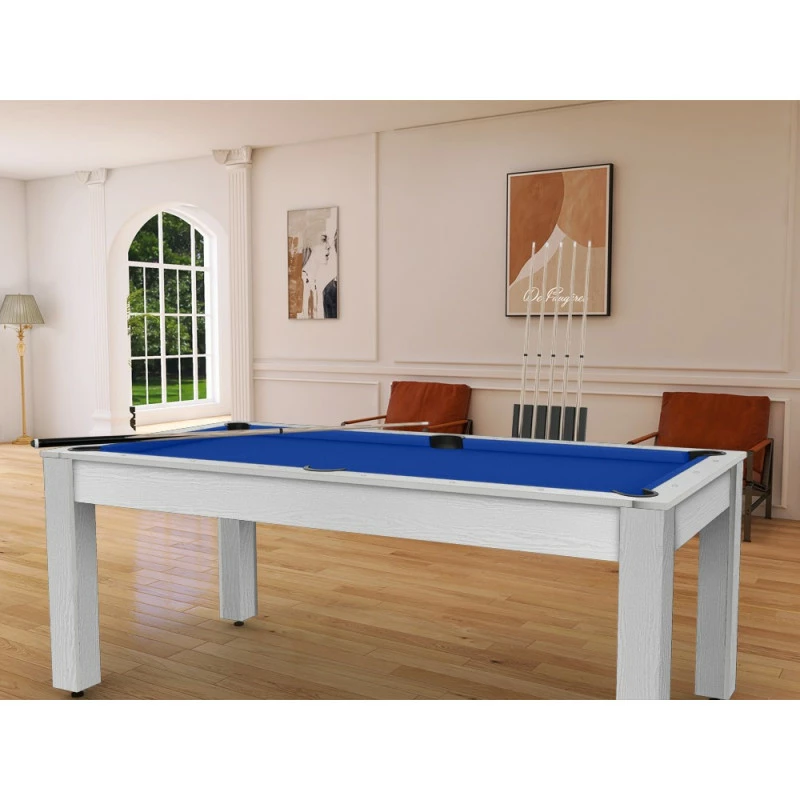 Pratique, avec le plateau dinatoire vendu séparément, ce billard peut se convertir en table de salle à manger pour 8 personnes.