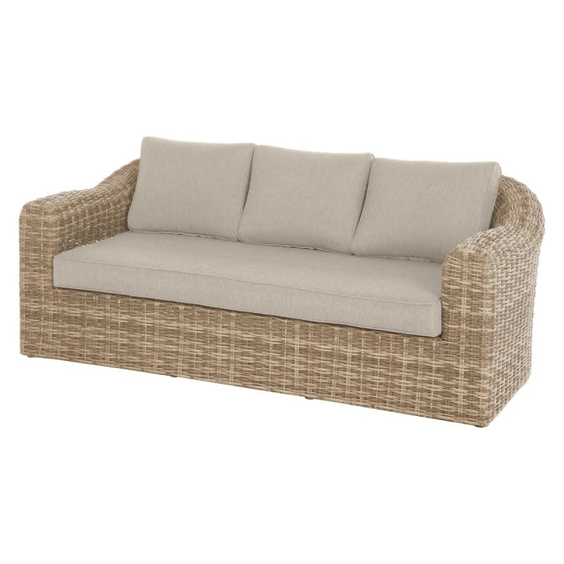 Optez pour la tendance résine tressée à l’extérieur avec ce canapé 3 places Mooréa en coloris savana de la marque Hespéride.