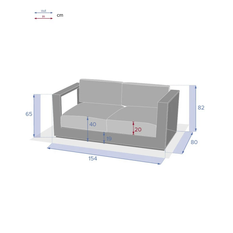 La structure est en aluminium traité époxy antirouille. Les coussins polyester 275 g/m² sont déhoussables pour un entretien facile et traités déperlants permettant à l’eau de glisser sans pénétrer dans la matière.