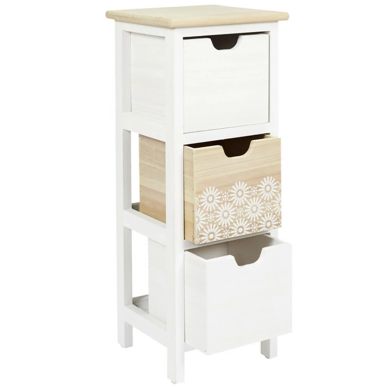 Bénéficiez de rangement supplémentaire avec le chiffonnier 3 tiroirs Chic coloris naturel et blanc.