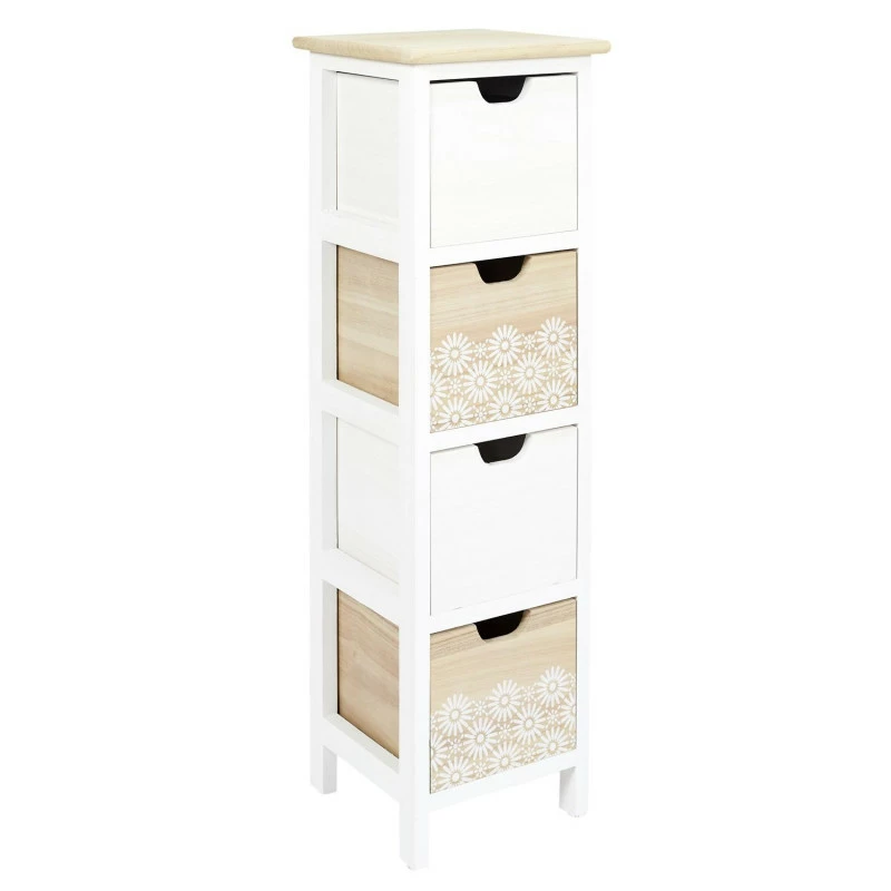 BĂ©nĂ©ficiez de rangement supplĂ©mentaire avec le chiffonnier 4 tiroirs Chic coloris naturel et blanc.Â