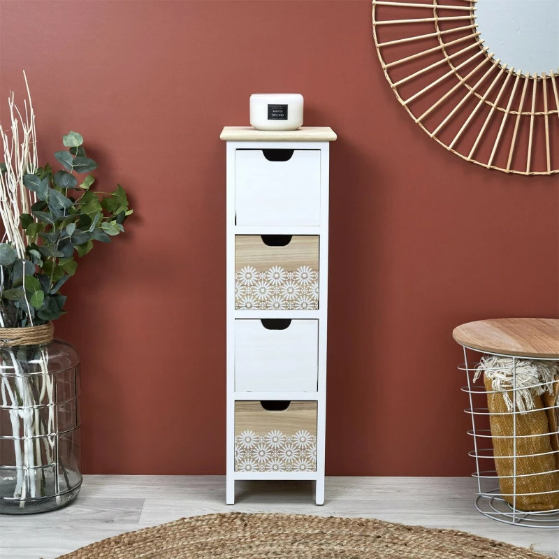 Avec ses motifs floraux, le chiffonnier apportera une touche bohème Ă votre pièce.Â