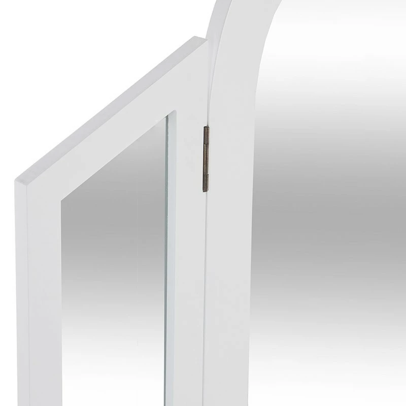 Craquez pour cette coiffeuse blanche composée d’un miroir central ainsi que de deux petits miroirs pivotants.