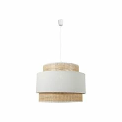 Suspension 2 Abat-jours Cannage Et Tissu Blanc Ostaria