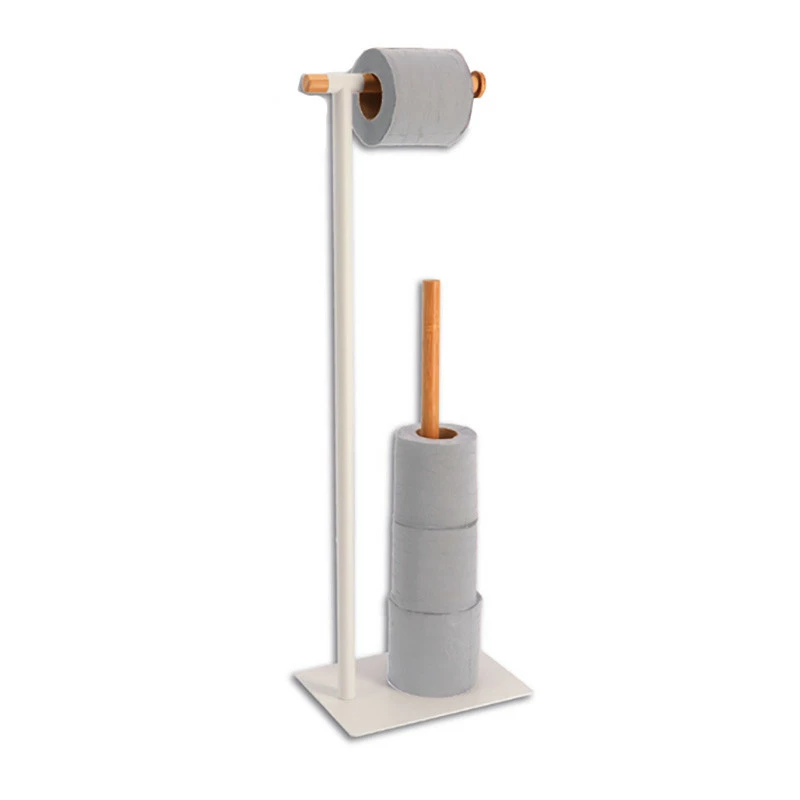 Ce dérouleur avec réservoir papier WC métal coloris blanc et bambou donnera du style à vos toilettes avec ses coloris blanc et bois.