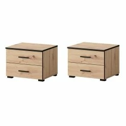 Ensemble De 2 Chevets 2 Tiroirs Nantes Noir Et Bois