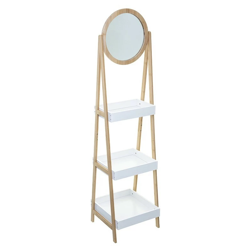Étagère 3 niveaux avec miroir rond. Idéale pour une chambre ou une salle de bain.