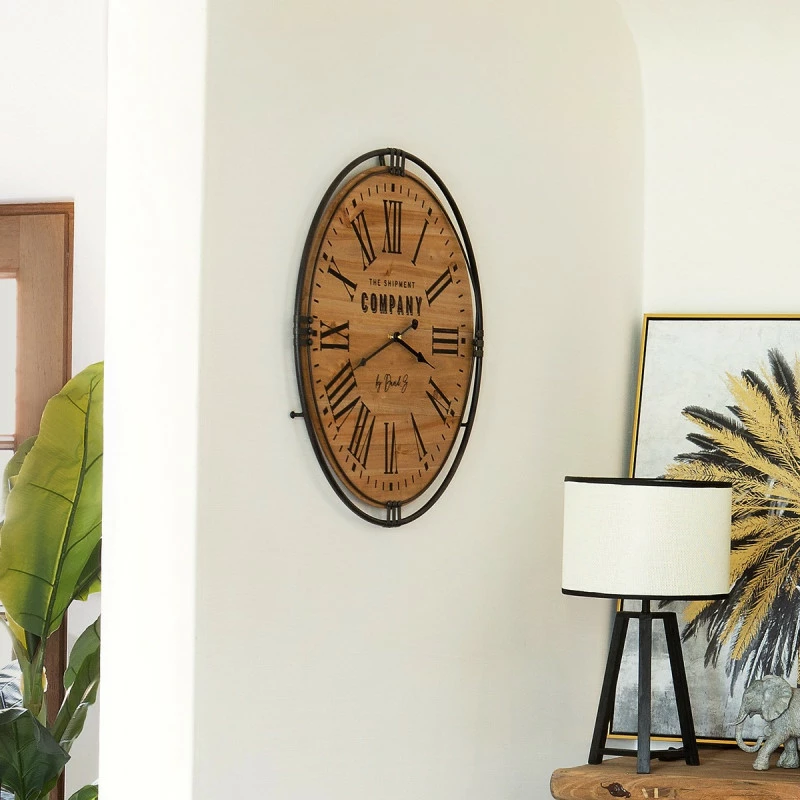 Horloge en bois et fer avec chiffres romains de la marque Atmosphera. Un style résolument industriel pour cette horloge « Colonial ».