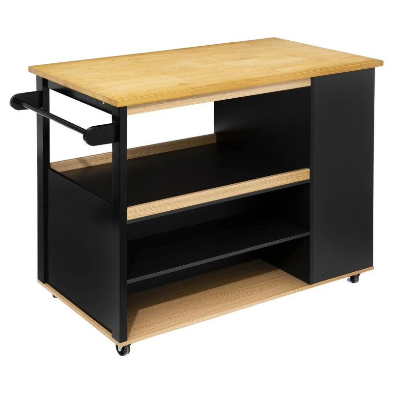 Envie d’un ilot central dans votre cuisine ? Cet ilot sur roulettes en coloris noir et naturel sera idéal dans une cuisine moderne.