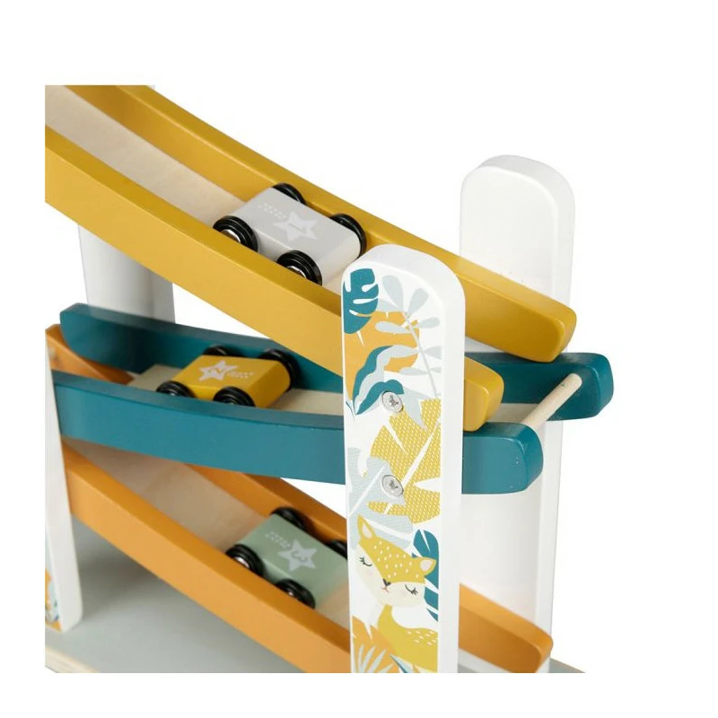 Plongez dans un monde ludique avec le jeu enfant en bois « Circuit de voitures » Ostaria, où des petites voitures dévalent une pente palpitante !