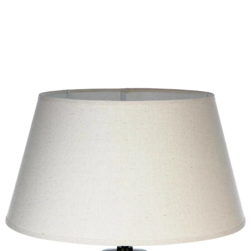 Pieds en bois massif réglables en hauteur. Grand abat-jour beige de 46 cm.