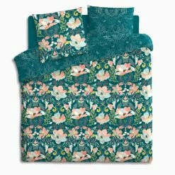 Parure De Lit Amelia Bleu Canard Et Motifs 240x220 Atmosphera