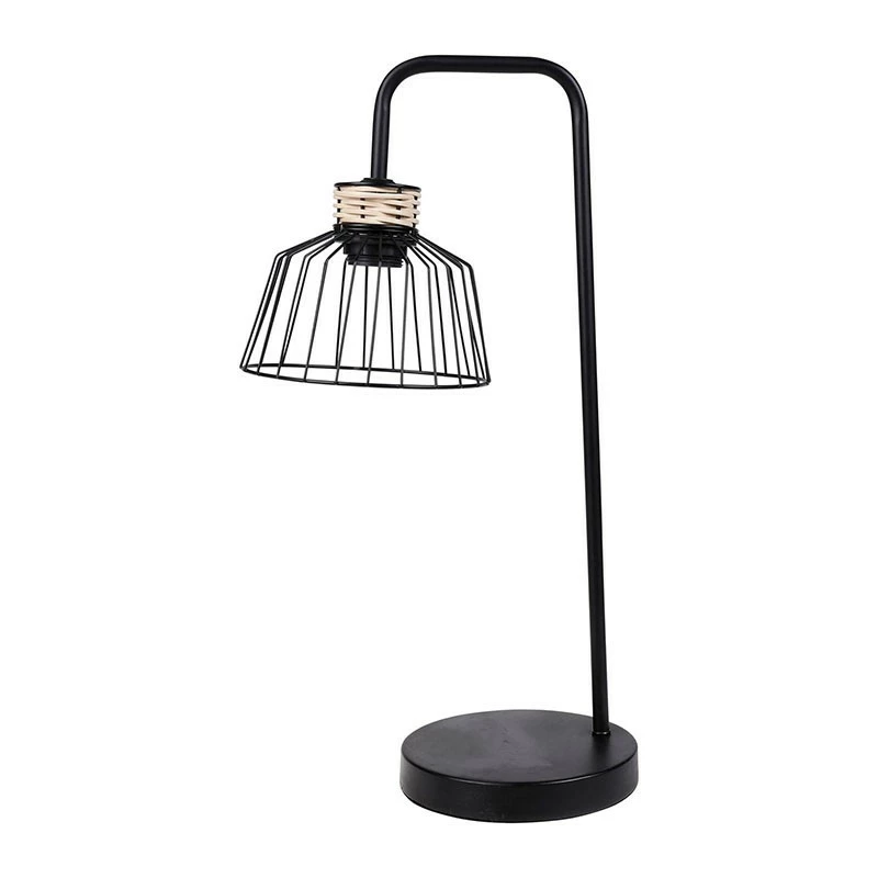 Apportez un point de lumière avec cette lampe à poser en métal noir et rotin de la marque Ostaria.
