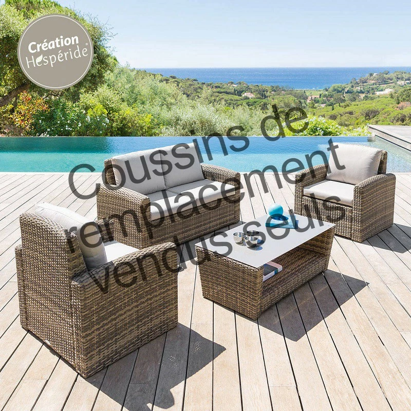Lot de 8 coussins de remplacement pour le salon Polyénsia de marque Hespéride.