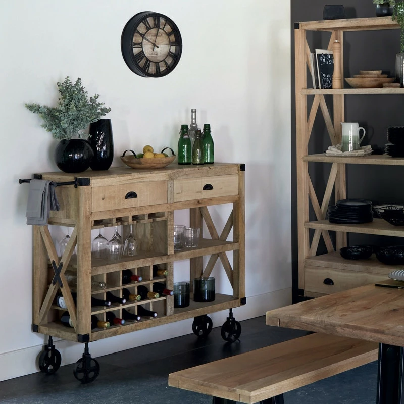 Meuble Bar 2 Tiroirs Sur Roues Silas Atmosphera -Ledepot Mobilier Magasin meuble bar 2 tiroirs sur roues silas atmosphera 6