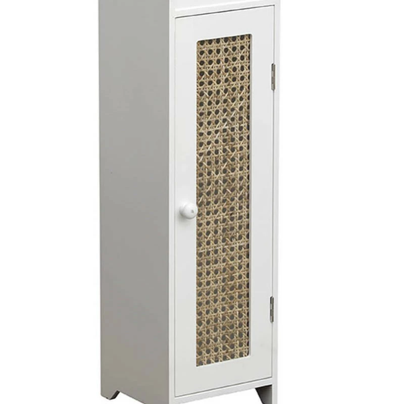 Découvrez le meuble réserve et dérouleur avec porte cannage en coloris blanc.