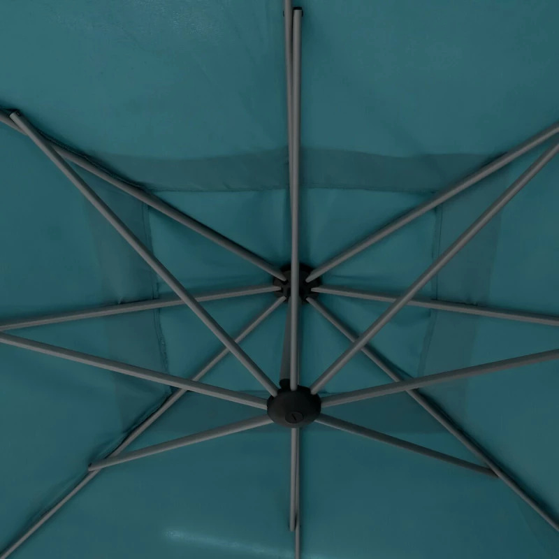 Protégez vous du soleil avec le parasol décentré toile carrée Manoa en coloris bleu canard de la marque Hespéride.