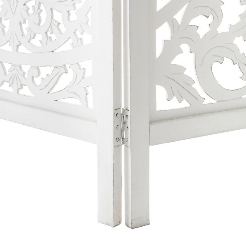 Paravent Blanc Terre Bois Sculpté Atmosphera – Image 3