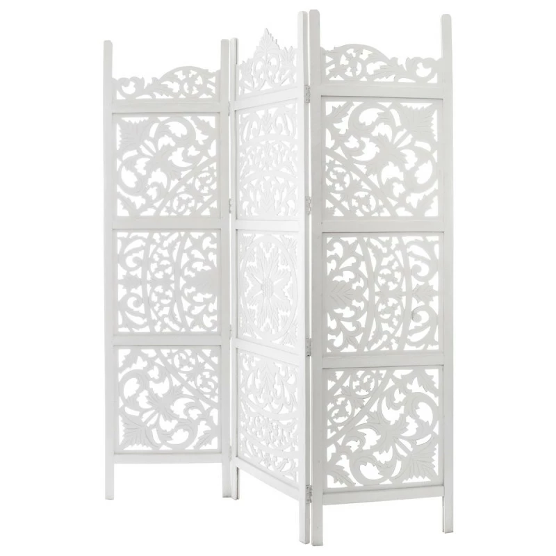 Paravent Blanc Terre Bois Sculpté Atmosphera – Image 2