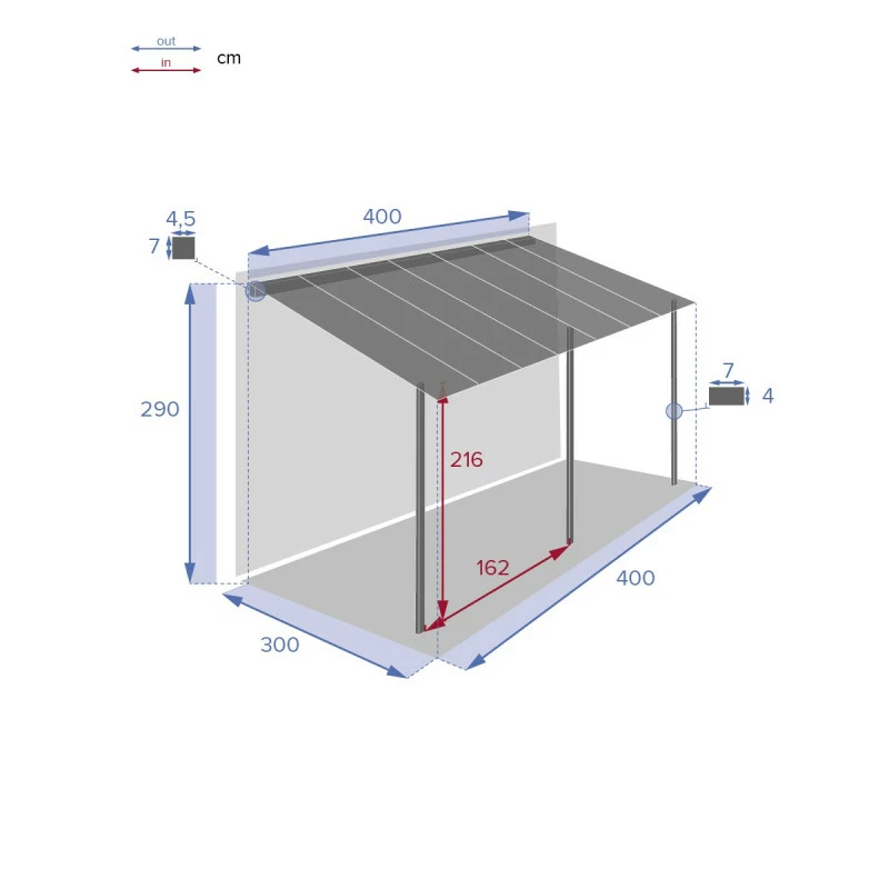 Elle s’adossera contre le mur pour protéger efficacement votre terrasse.