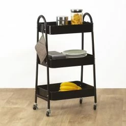 Desserte 3 Niveaux à Roulettes Métal Noir 5Five