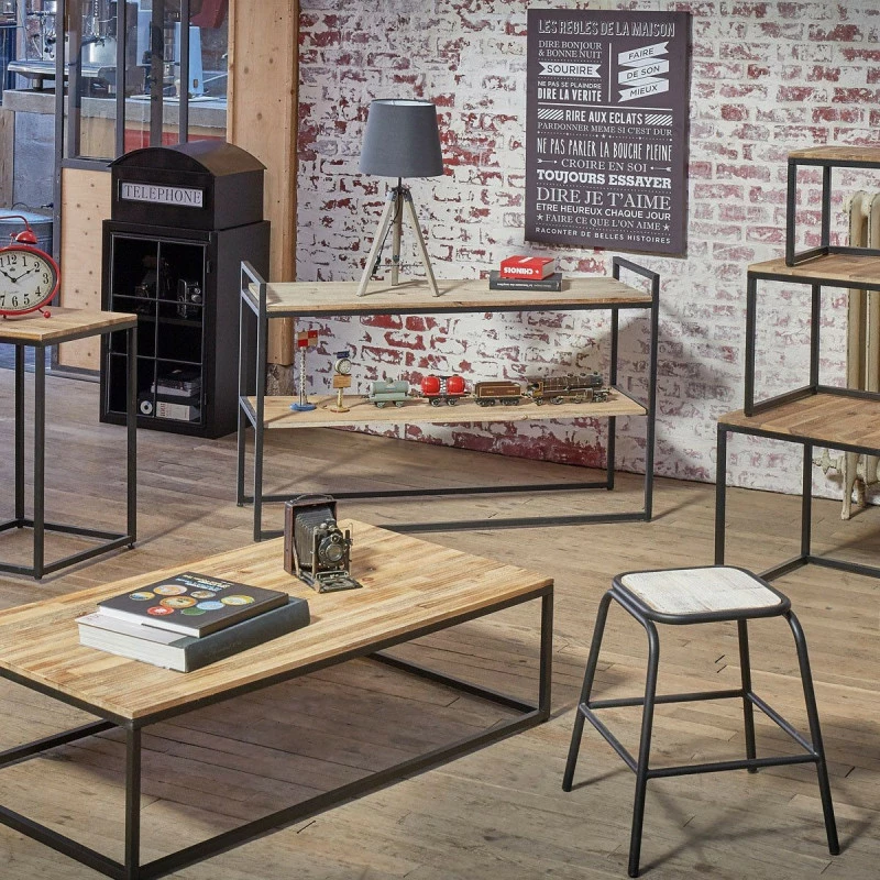 Optez pour cette table basse vintage pour donner un aspect rétro à votre salon ! L’association du coloris bois et noir mat : dernière tendance déco !