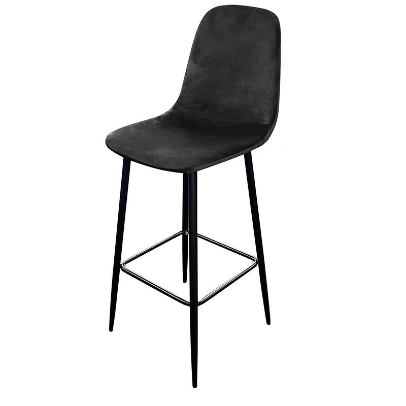 Tabouret De Bar En Velours Noir Pieds Métal Inoui -Ledepot Mobilier Magasin tabouret de bar en velours noir pieds metal inoui 1 1