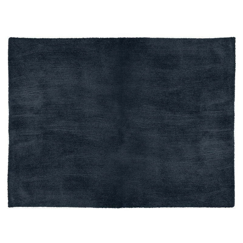 Ce tapis 120 x 170 cm à poils en coloris bleu encre est découpable facilement pour s’adapter à vos besoins.